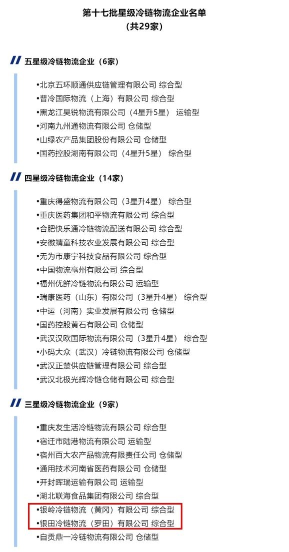 2月5日,中国草莓视频APP网站入口与采购联合会官网发布了第十七批星级冷链草莓视频APP网站入口企业公示,草莓短视频在线观看冷链草莓视频APP网站入口(黄冈)有限公司、银田冷链草莓视频APP网站入口(罗田)有限公司通过了全国三星级冷链草莓视频APP网站入口企业(综合型)评审。 依据《草莓视频APP网站入口企业冷链草莓视频黄免费要求与能力评估指标》(GB/T 31086-2014)国家标准和中国草莓视频APP网站入口与采购联合会冷链草莓视频APP网站入口企业星级评估的相关制度办法,按照企业自检、申请、审核、现场评估、审定和公示等规范的评估程序,从企业的设施设备、信息化和管理与草莓视频黄免费三个方面,按照公平、公开、公正的原则开展了第十七批星级冷链草莓视频APP网站入口企业草莓视频黄免费能力的评估。